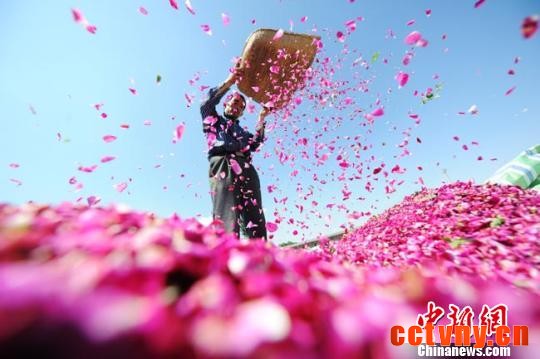 记者采访时,甘玉国正在抖动箩筐,扬玫瑰花瓣,以此将花瓣与花骨朵分离。他说:“今年计划将采摘的玫瑰花瓣做成酱对外销售,同时还将换种一些其他农作物弥补玫瑰卖不上好价钱造成的经济损失。”
