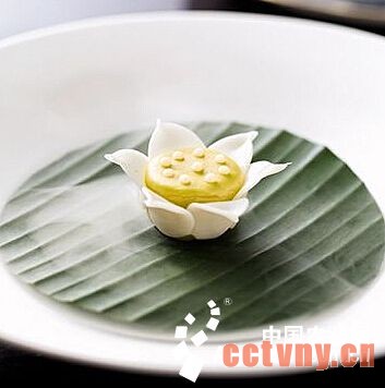 中餐厅里的创新甜品。造型颇有中国禅意。