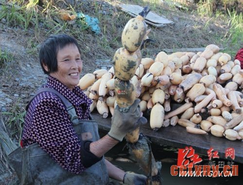 “每天大约采摘三、四百斤,价格还算好,批发达到了每斤3块多,日进帐约1200元左右。”邓柏佑算着自己每日的清单,他告诉记者,今年他的10多亩莲藕将喜获丰收,仅此一项大概可得收入10多万元。