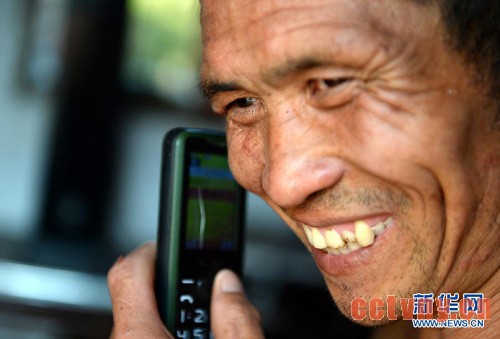曾九生在给饲料站打电话订购饲料(3月20日摄)。