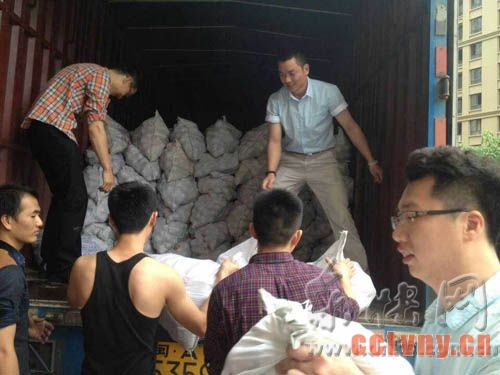 爱心人士帮忙卸雪柑