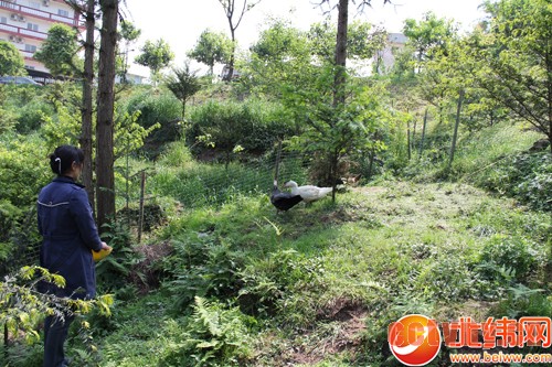 4月28日,在碧峰峡镇名扬村的舒心农场,场主赵晓瑛正在忙着饲养她的“特殊家禽”。