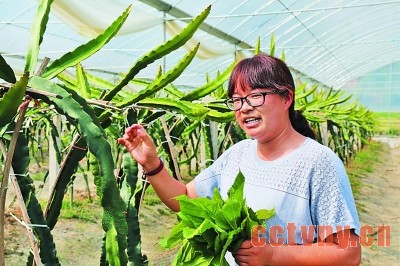 “去年的5月23日,塘子里开了第一朵荷花。今年4月26日,在树上发现第一颗熟透的桑葚。”她对园子里这些“第一次”如数家珍。每一个“第一次”,对她来说都是莫大的鼓励。通过精心栽培、浇灌、施肥,邱敏的农场初具规模,一批又一批桑葚挂在枝上由红而紫,70余亩的火龙果更是长势喜人,眼看着再过一段时间就能开花结果。