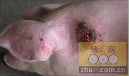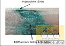 (图一 四川某猪场使用无针头注射器后观察到的疫苗扩散吸收情况)