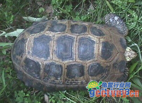特征:15cm~18cm,龟壳成会淡灰色,龟壳上布有方块装的很色纹理,四只脚如海龟的脚。
