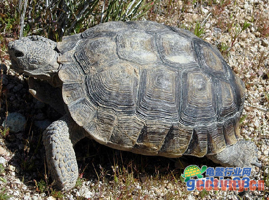 沙漠地鼠龟(学名:Gopherus agassizii),俗名沙漠陆龟。最大甲长37公分。只有1枚腋盾,在所有的椎盾中以第5椎盾的宽幅最大。是陆生爬行动物,也是一种独居动物。以龟壳保护自身,免受猎食者袭击。龟壳的顶部为龟甲,底部为龟板。陆龟同时拥有内骨骼与外骨骼,是昼行动物,通常在黄昏时分活动。。以青草,花及仙人掌为食。分布于美国西南部,墨西哥西北部。