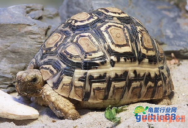 繁殖:豹龟的性成熟期在自然状态下是在12至15周岁。一窝蛋的数量可能会很多,一般而言有5到15个蛋。但对某些体形较大的雌龟来说,能下30多个蛋也是不足为奇的。孵蛋最好在大概30至31摄氏度下的干燥孵化器中进行,通常大多数孵化时间在130至150天之间。