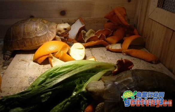 4、龟也比较喜欢,橘子皮的颜色,围着新鲜的橘子皮周围爬动。