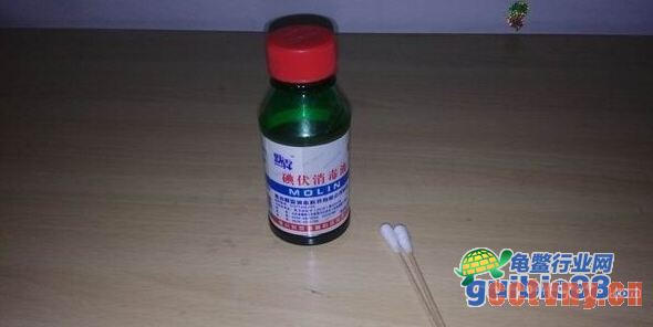 图3:注射部位消毒,碘伏,棉签,跟人抽象前的消毒一回事。