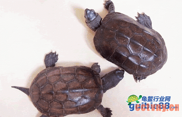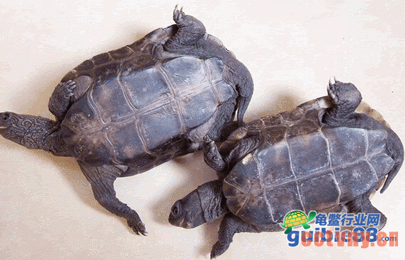 上面两只龟的甲盾上的陈旧角质已经有两三年没有完全脱落了