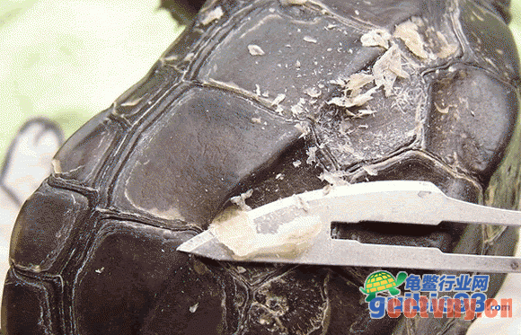有的个体在蜕甲过程中不能顺利地将陈旧的角质完全脱落,对于这种情况可以用手术刀帮助清理陈旧的角质。