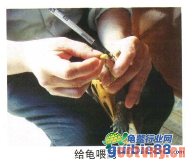 在喂药过程中,动作要轻,不要伤害到龟的头部。