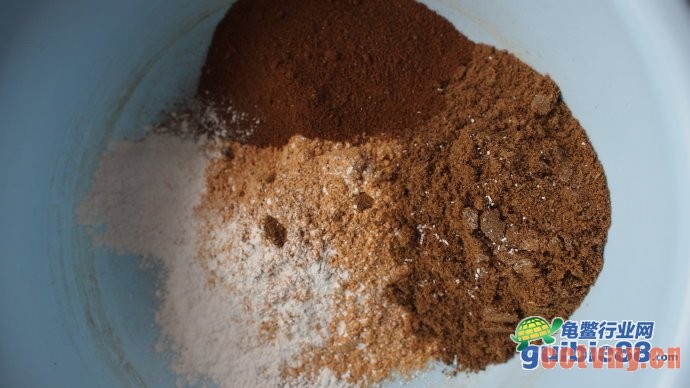 3.为了增加龟的兴趣,特意选用比较腥气味十足的蚯蚓粉和蚕蛹粉,这个加的比例就看最终合成的味道了
