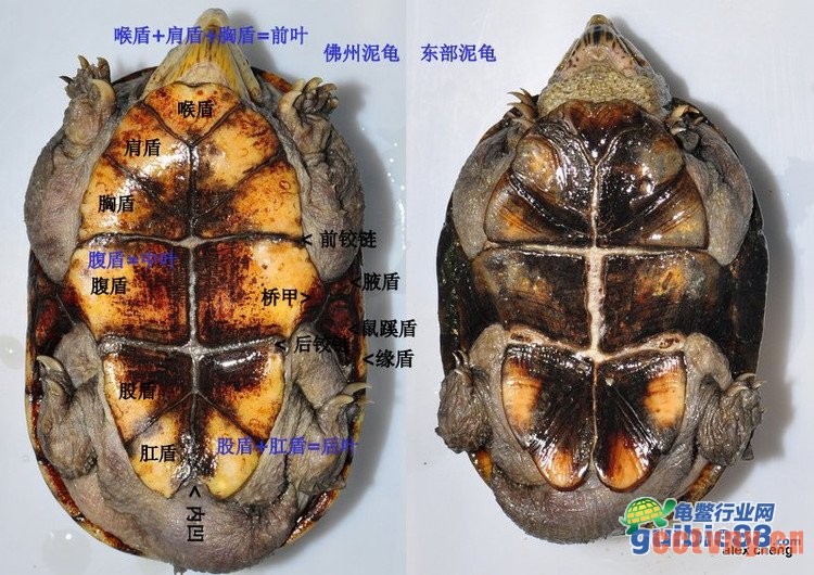 用佛罗里达泥龟和东方泥龟(都是WC 成体公龟)做比较