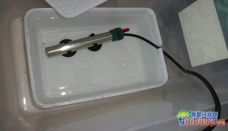 2. 把加温盒放在泡沫箱底,上面放上孵化盒,用孵化盒打孔和喷水来控制湿度(这个网上很多介绍我不多说了),在盖上泡沫盒,把泡沫盒上沿烫一个圆槽孔,能卡进 去加热棒的电线,这样,一个基本密封的孵化箱就做好了,温度非常稳定,加热盒由于基本密封,长期不用换水,也不用担心半水龟卵后期湿度大的问题。