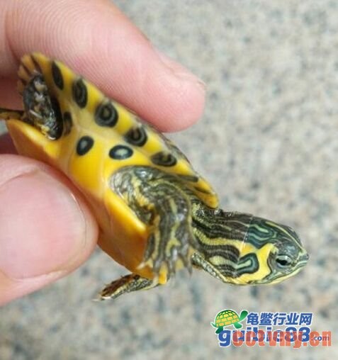 而市场现在流通很多杂交的黄耳龟,与同系龟杂交过的黄耳龟有些甚至难以辨别,如下图,头部条纹相连即可排除纯种。