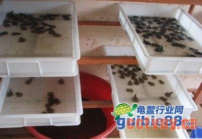 二、龟苗的放养密度:按水池占水面积计算,每平方米水池可以放养100---200只龟苗(这里的龟苗指刚出壳不久的幼苗)。但是,随着龟苗长大,放养的水池面积要相应增大。