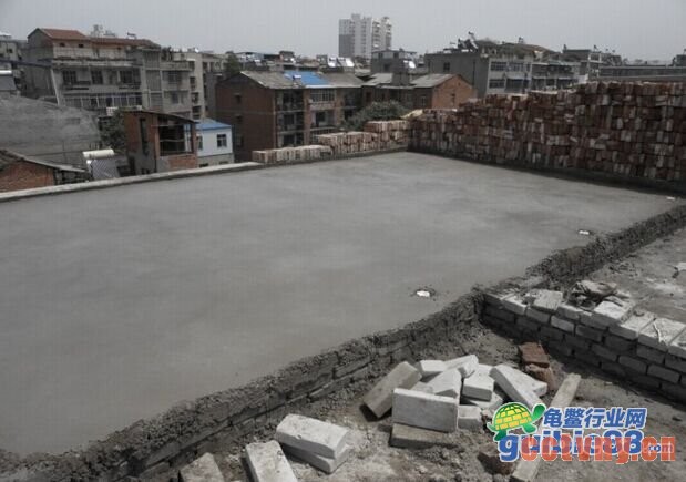 这个混凝土层就是龟池的池底.四周的墙也在池底上建立.一般5cm就够了 我是弄多了石料 索性一次性用完 免得还得清理建筑垃圾,