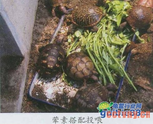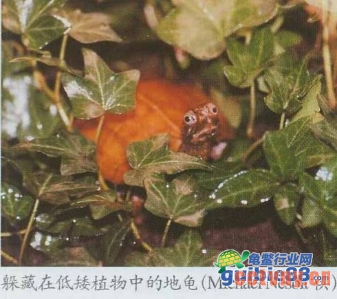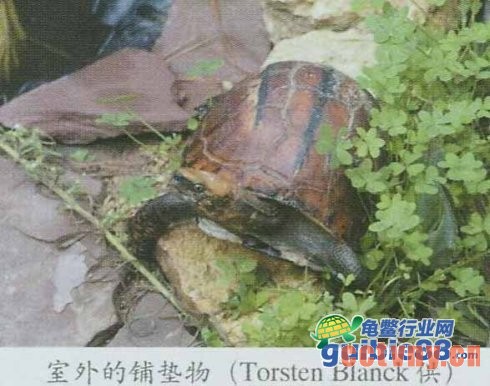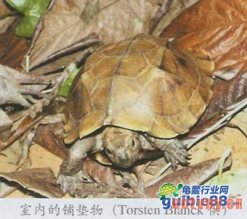 (5)铺垫物:室外的龟舍内,铺垫物以自然物为宜,沙土混合物、泥土、碎石子、石块和树叶等,并栽种一些低矮植物,供龟躲藏。室内龟缸的铺垫物建议先用沙土垫底,再铺盖一些枯树叶。也可直接用土铺垫,如果能饲养一些蚯蚓等小动物则更佳,使龟自己觅食。切忌将龟饲养在水泥池或没有铺垫物的玻璃缸内,以免损伤龟爪。