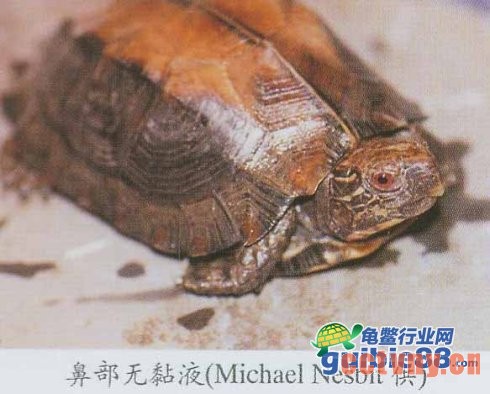 ③鼻孔:鼻孔周围干燥,无黏液。患病龟的鼻孔中有黏液,严重者有流血现象。
