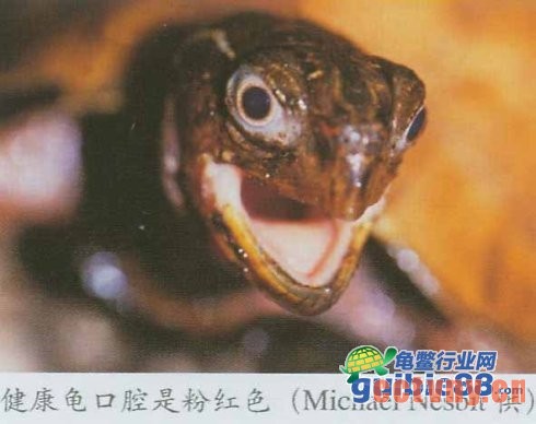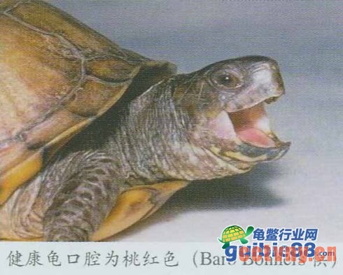 ①口腔:大多数健康龟的口腔为粉红色或桃红色。若口腔内呈苍白色,或有白色溃疡,则表明龟患病。