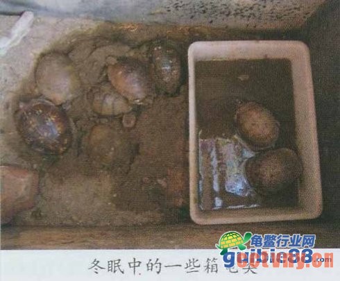 冬眠时,龟窝内增加一些草、木屑和树叶等物,使龟能将自身埋藏其中。放在室外冬眠的龟,偶尔下雨对冬眠的龟并没有什么威胁。冬眠的龟需高湿度环境,因此,经常检查龟窝环境是必要的。不可以把龟放在干燥箱子中冬眠,这可能使龟脱水而死亡。