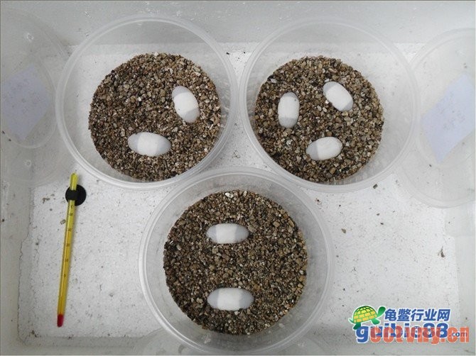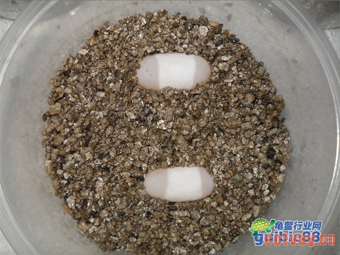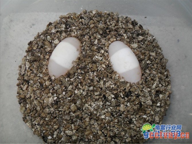 刚挖出来的龟蛋不知道是否受精,可以放置在孵化盒的蛭石上观察8小时至7天不等,