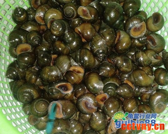 田螺、苹果螺等价格便宜,易于繁殖,也是水龟的常见食物。优点是可以直接放到缸里饲养,现吃现抓,还能处理食物残渣,有助于保持水质。缺点是长大了壳太硬,乌龟就咬不动了。