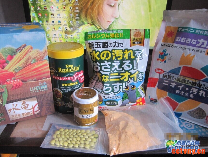下图从左到右分别为命脉水龟粮,德彩,COMET善玉菌,高够力原色,命脉肠胃舒,土霉素,爬虫电解质。 为什么我会选择这些作为出眠之后可能需要用来喂食和作为备用的药物。 命脉作为我所有龟的基础粮在喂食,德彩47%的粗蛋白可以提供给消瘦的龟更多的营养,COMET善玉菌可以在龟出眠之后作为第一顿来喂食(善玉菌可以减少水质污染和调理肠胃),高够力原色可以当作基础粮喂食,命脉肠胃舒可以在出现肠胃问题的时候使用帮助治疗,电解质可以给出眠后长期拒食的龟补充营养,土霉素一般我不会去使用对龟有较大的副作用(经常使用会影响龟的骨骼的发育)。