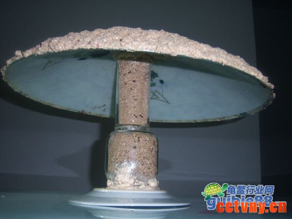 如果你喜欢做手工,也可以自己 diy乌龟晒台和躲避穴。例如:找一个废弃的灯罩做晒台。上面喷一些发泡胶(也叫膨胀胶,淘宝有卖),按上一层沙子,避免太滑爬不上去。