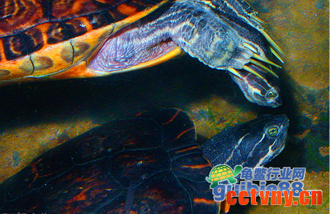 3、甜甜圈雄龟先通过雌龟的尾部气味,可以探查到是否能交配的信息。雄龟这时便游到雌龟面前,振动起长长的爪子,敲击她的脸部,就像给雌龟洗脸一样,这表示雄龟在向雌龟求爱。这时,如果雌龟也会做出这样的动作,那表示雌龟接受了雄龟的求爱,雌龟将会让雄龟爬上她的身子进行交配。
