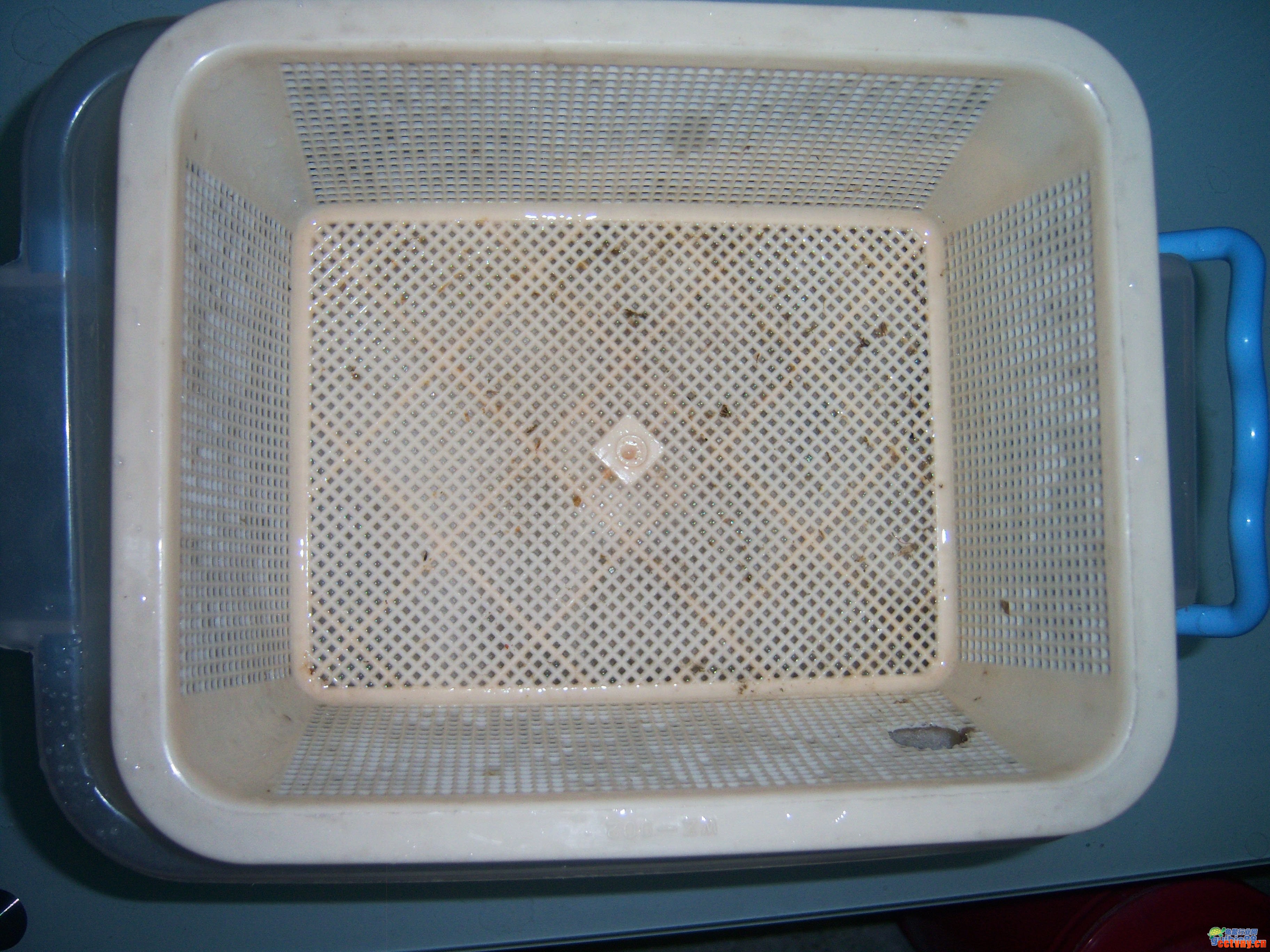 四、过滤棉上放一个塑料筐,可以过滤杂质,减少清洗滤棉的次数,在进水口同样的位置烫一个洞,方便水泵的管子进来。