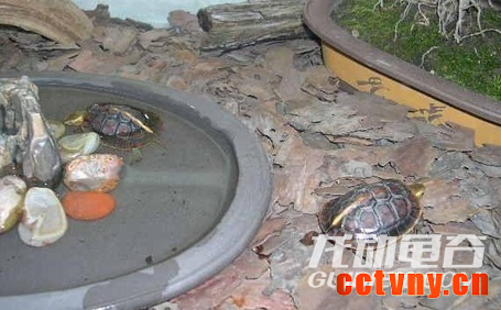 2、黄缘龟很喜欢阴暗的,能隐蔽的地方,所以隐蔽处不要忘了设置。要尽量用尺寸稍大一点避洞,避洞的大小要在龟个体大小的两倍以上,以便龟在里面活动,安置于水场的附近即可。